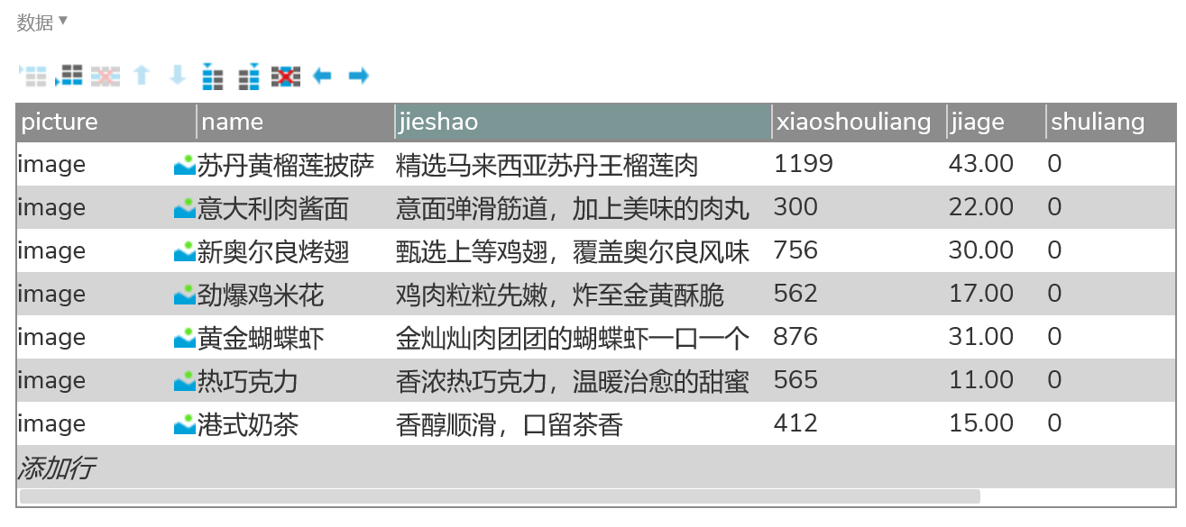 picture:代表商品图片,我们右键或者复制粘贴图片到表格即可;name:商品名称;jieshao:商品介绍;xiaoshouliang:商品的销售量;jiage:商品价格;shuliang:用户加入购物车的数量,因为一开是为0,所以全部填写0。填写表格内数据即可,小提示,可以在excel里面填写好再复制粘贴,能够大大提高效率哦。