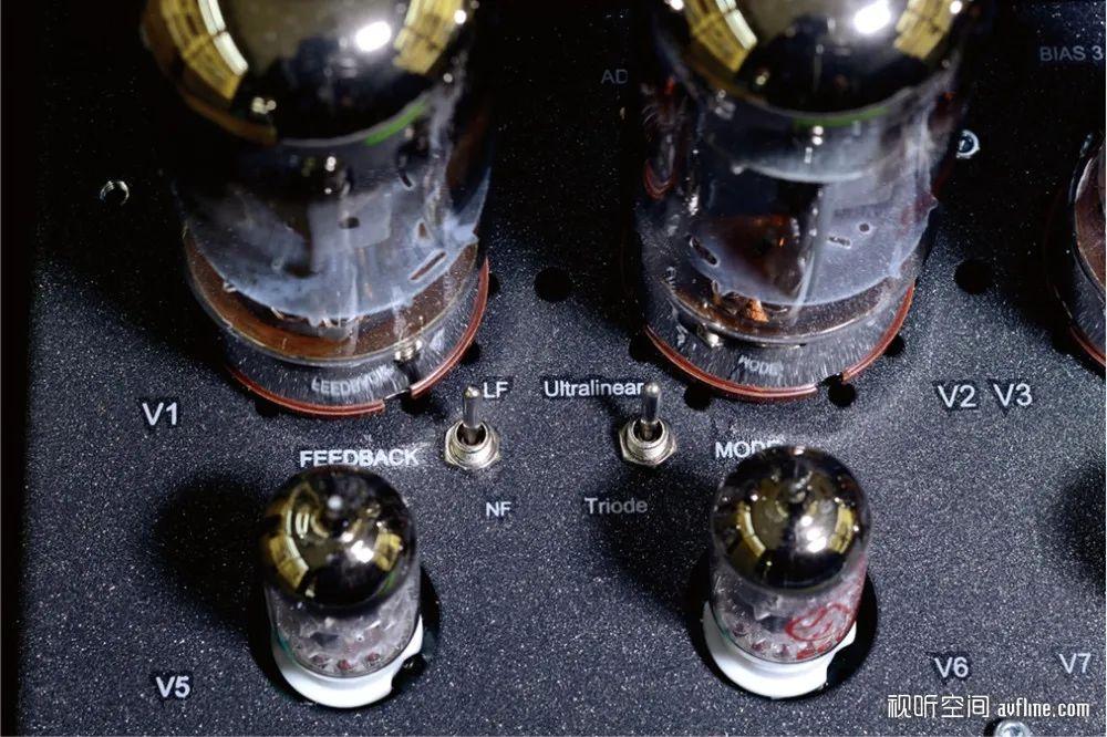 由于电子管的特殊性,其电路设计可以让推挽输出级的功率放大管工作在不同的模式下,比如超线性模式和三极模式,这类功放产品通常都提供这两种模式供用家选择,因此有发烧友戏称买着样的功放是“买一送一”,言下之意是很划算的意思,Aeolos Plus也不例外。Aeolos Plus在超线性模式下输出功率可达每声道45W,三极模式下也有28W。这两种模式存在的意义在于它们不同的声音风格,用家可以根据自己的口味或搭配的音箱来选择。此外,Aeolos Plus也有两种负反馈选择,不同的反馈量当然也有不同的声音表现。
