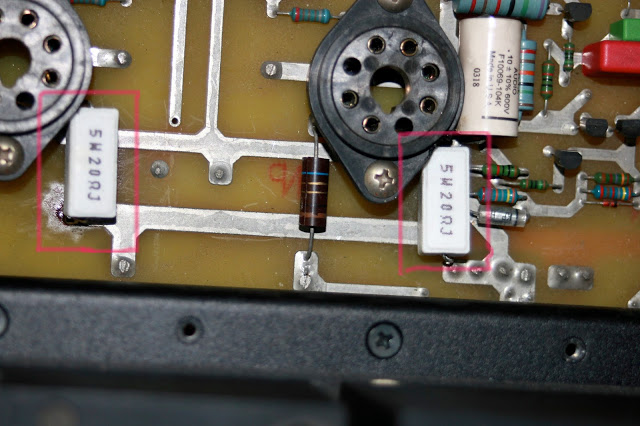 廉栅电阻是100 OHM 2W,怎么换成20 OHM 5W/使阴极电流增加,烧断测电流的1 OHM2W的电阻,连管子6550C的阴极也烧断!!!!
