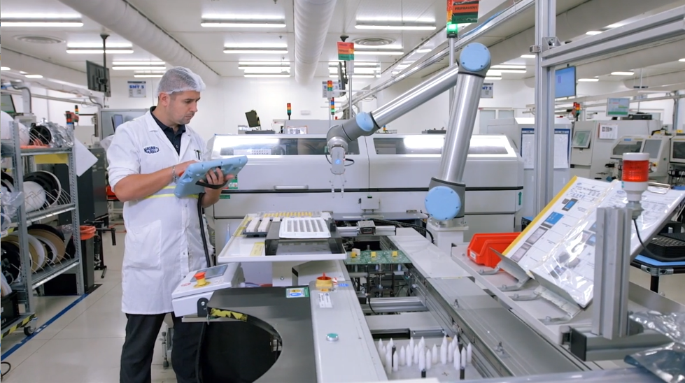 √ UR5和UR10协作机器人将连接器和引入部件插入电路板中