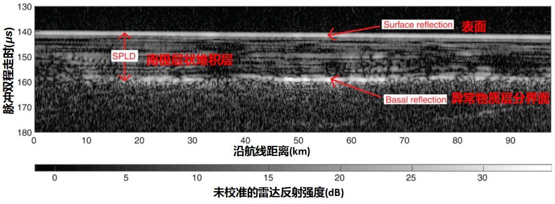 不同物质的介电常数(可以简单理解为让电磁波衰减的能力)不同,因此探测器收到的从不同物质分界面反射回来的电磁波的时间和强度就会不同。次表层雷达的探测原理就是通过发射和接收电磁波信号,借助测量到的雷达信号接收时间和反射强度,反推这些雷达信号穿过了哪些不同的物质,每层物质有多厚。