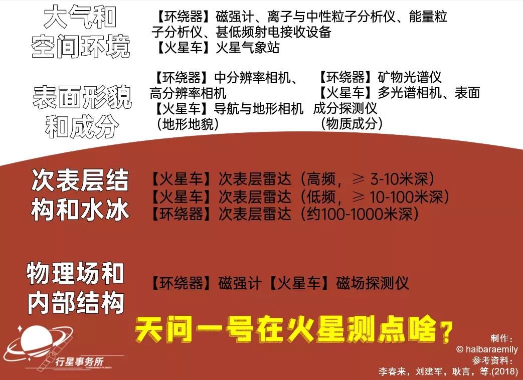 总的来说,天问一号计划对火星开展的科学探测涉及到火星的方方面面,外至火星的空间环境、火星表面,内至火星的次表层、水冰和液态水分布、物理场和内部结构,环绕器+火星车这13种科学仪器都可以“一网打尽”。