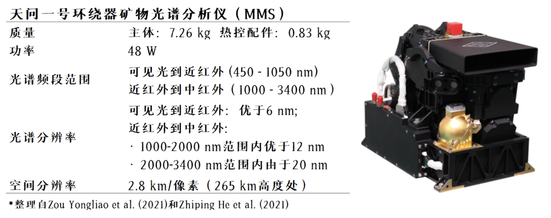 △天问一号环绕器矿物光谱仪参数和外形。来源:参考文献 [1, 2]