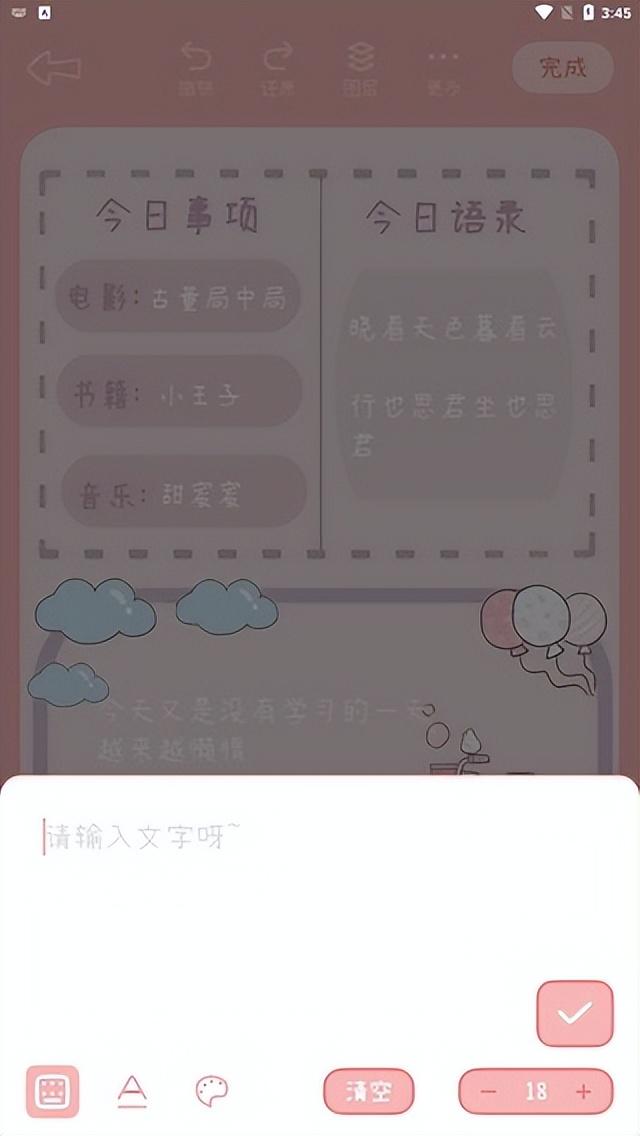 一本手帐app 是一款功能丰富,界面精美的备忘录式日记本,它不仅可以作为用户的提醒工具,还可以用来记录重要日子,甚至还可以指定喝水提醒、记录运动打卡、签到等等,超多场景的模板素材提供,更有丰富的花样字体,只要你有足够的想象力,便可通过内置的丰富功能,打造个人专属“笔记”。对比以往见到过的“手账”应用,多以提醒为主,反观这款软件,提醒事项只是作为基础功能来满足大多数用户使用需求,更多的特点在于个性化。