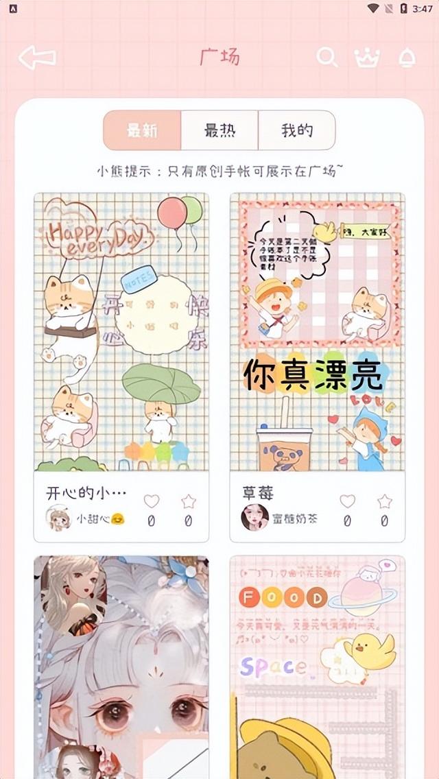 同时在“一本手帐”的小屋中用户不仅可自由放置小熊,还能布置家具,屋内的变化完全由用户自己来决定,倘若这些还不够,可以在商店购买其他设置来完善房间布局。而且通过简单的互动,可以给予用户“家”的温馨,不过该软件的核心功能则在于备忘录式的日记记录,具体操作非常简单,点击“+”在众多免费模板中选择你喜欢的背景作为重要提醒,期间你还可以选择图库里的照片,设置花样字体,拟定字体大小,自由搭配颜色,或增加贴纸来增强重要事项提醒。另外,一本手帐还提供了社区广场功能,在广场上你能看到其他用户原创的手账样式、风格,可以对原创作品进行评论、点赞或收藏,甚至还可以直接使用,是不是非常的奇妙。