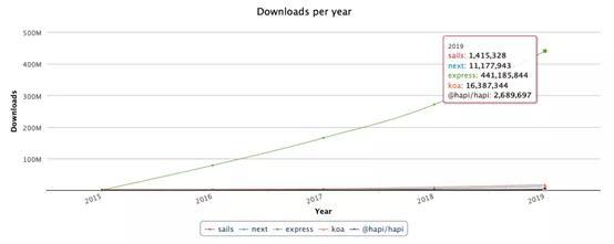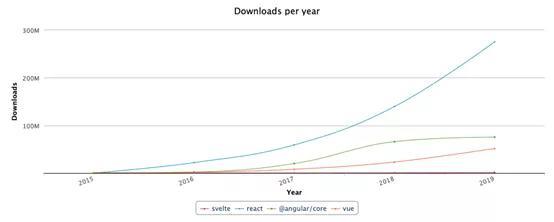 笔者喜欢npm下载指标,因为它可以很好地呈现框架的活跃使用情况*。由于用户在本地计算机上运行npm install,因此通常处于工业框架的下载情况会极其活跃。