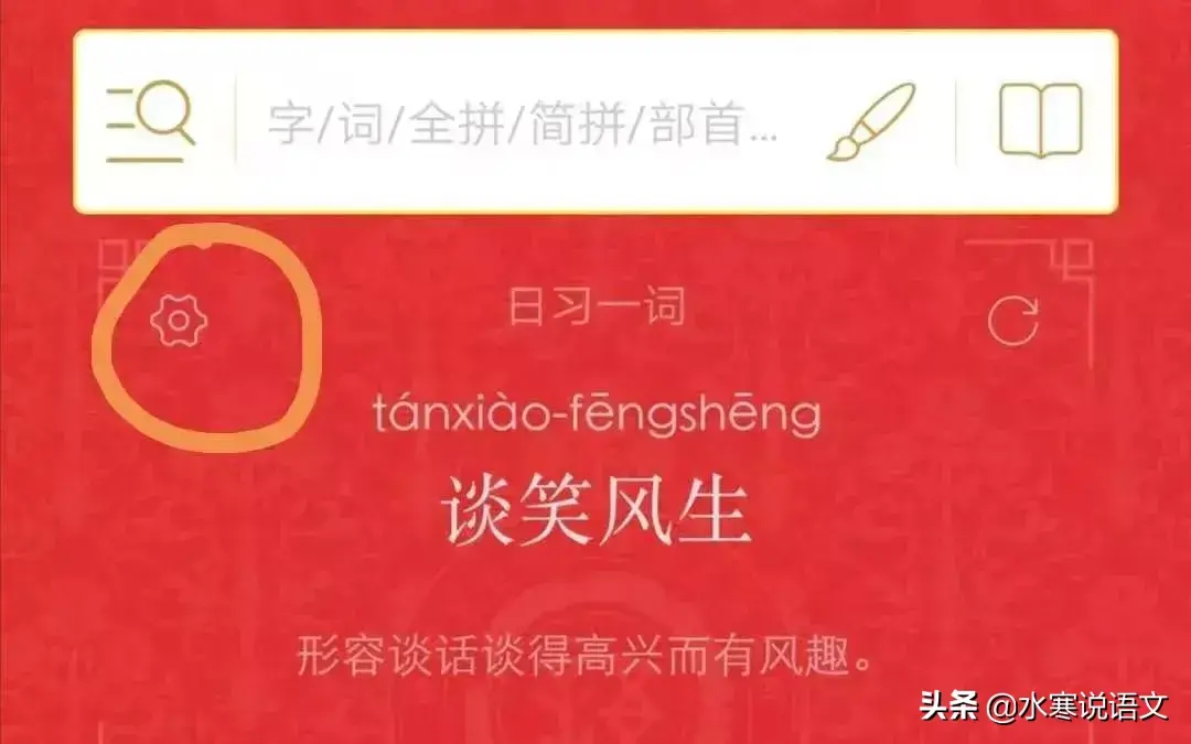 前面介绍了该APP的学习功能,这个功能在首页中还有一个很好的设计,那就是“日习一词”这个栏目。每次查词典都可以利用零散的时间学习一两个词语。而且这个“日习一词”还可以通过点击左侧的齿轮图标,自行设置学习什么样的词语,很能体现个性化学习的特点。