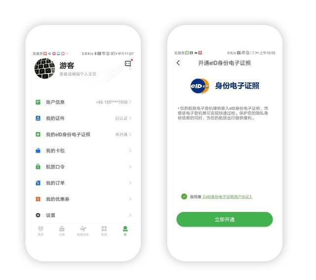 目前登机用的eID身份电子证照由航旅纵横、公安部联合打造,基于移动互联网,采用近场通信、人脸识别、活体检测、数据加密等前沿技术,将公民身份证件信息融合在电子登机牌中,实现“一机在手、畅行无忧”的全流程自助出行。