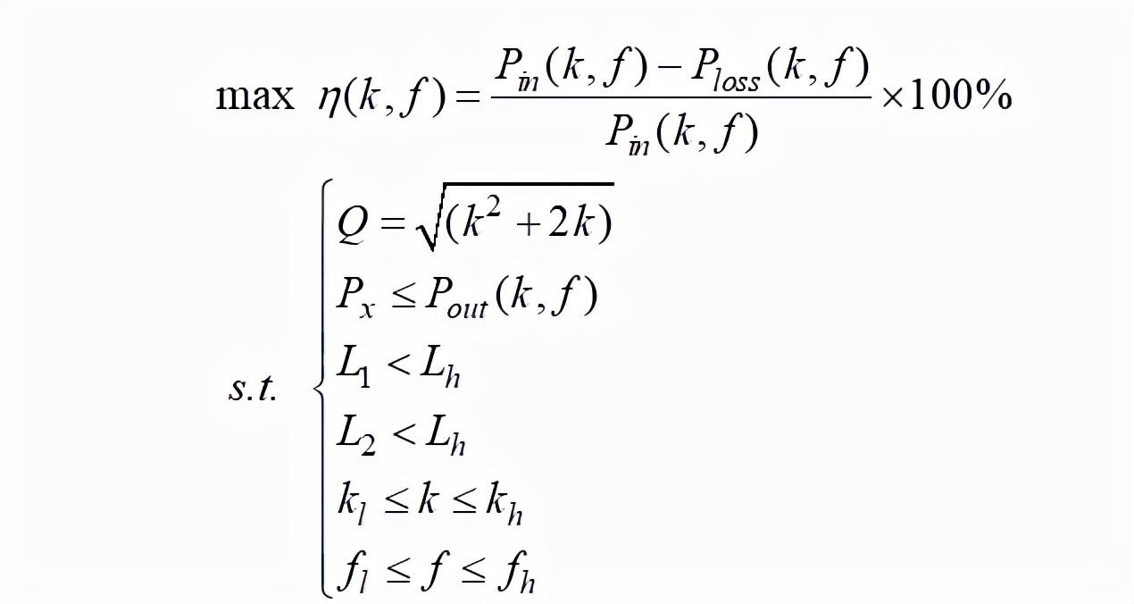 根据图2所示的系统等效电路,首先给出系统约束条件,包括激励电压和工作频率的约束、ZPA等式约束、补偿电感最大值约束和输出功率需求约束。