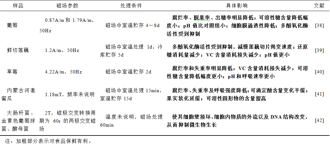 磁场与食品保鲜研究进展