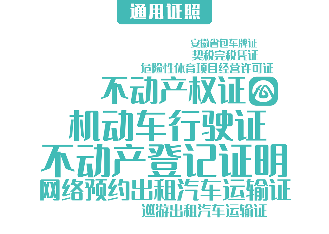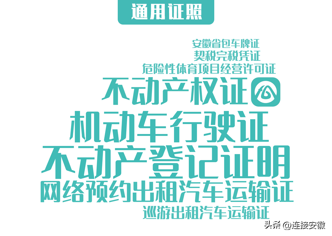 此外,还有通用证照(个人+法人)8项,例如:机动车行驶证、不动产登记证明、不动产权证等。