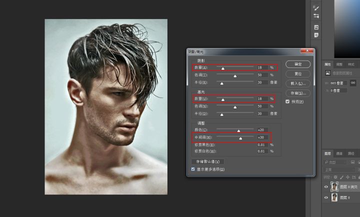 调整这三处的目的是加强图片的明暗对比度,我是简单粗暴调整的。大家不要跟我的参数一样调整,根据你自己的素材感觉走