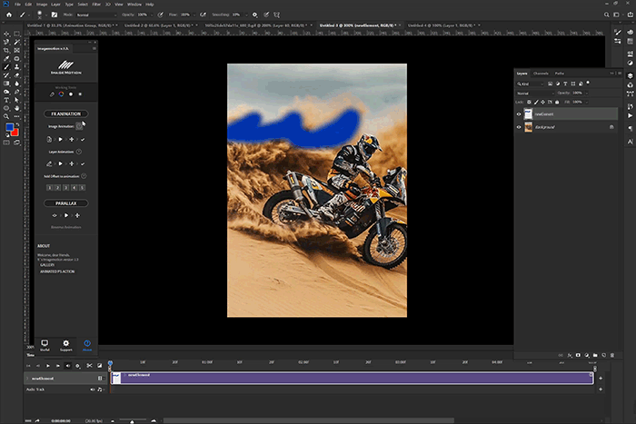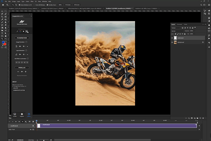 Imagemotion插件是一款图片流动循环特效PS插件,它能够为静态照片添加动态效果,让你的图像看起来更加生动(需要注意的一点是,这个插件仅支持英文版PS)