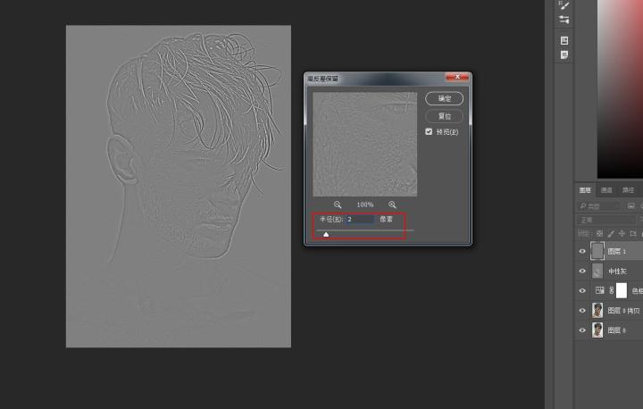 5、盖印图层(快捷键:Ctrl+Alt+Shift+E ),然后选中图层滤镜>其他>高反差保留