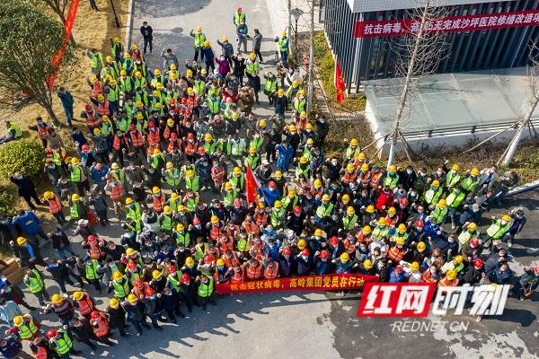 湖南高岭建设集团党员和工人在沙坪医院改造项目合影。