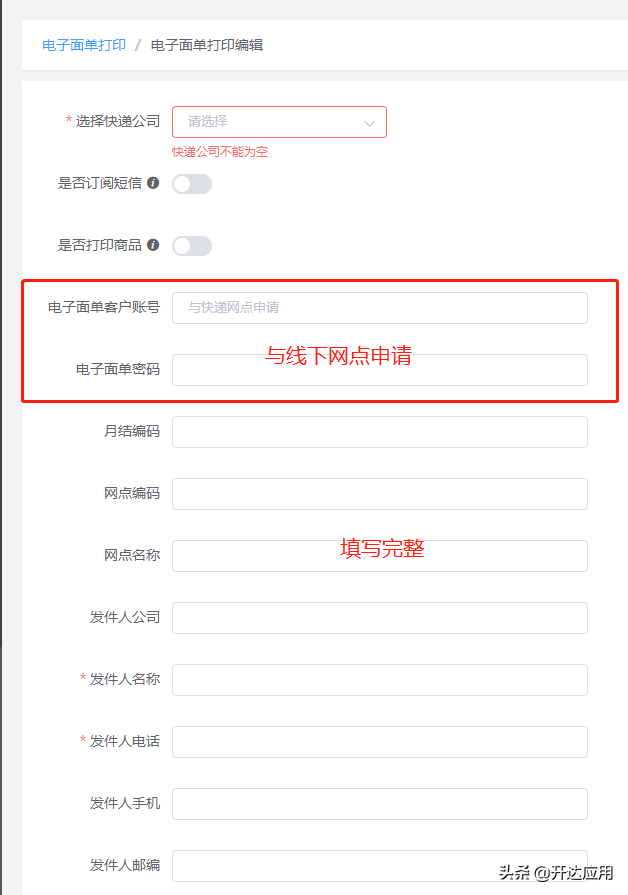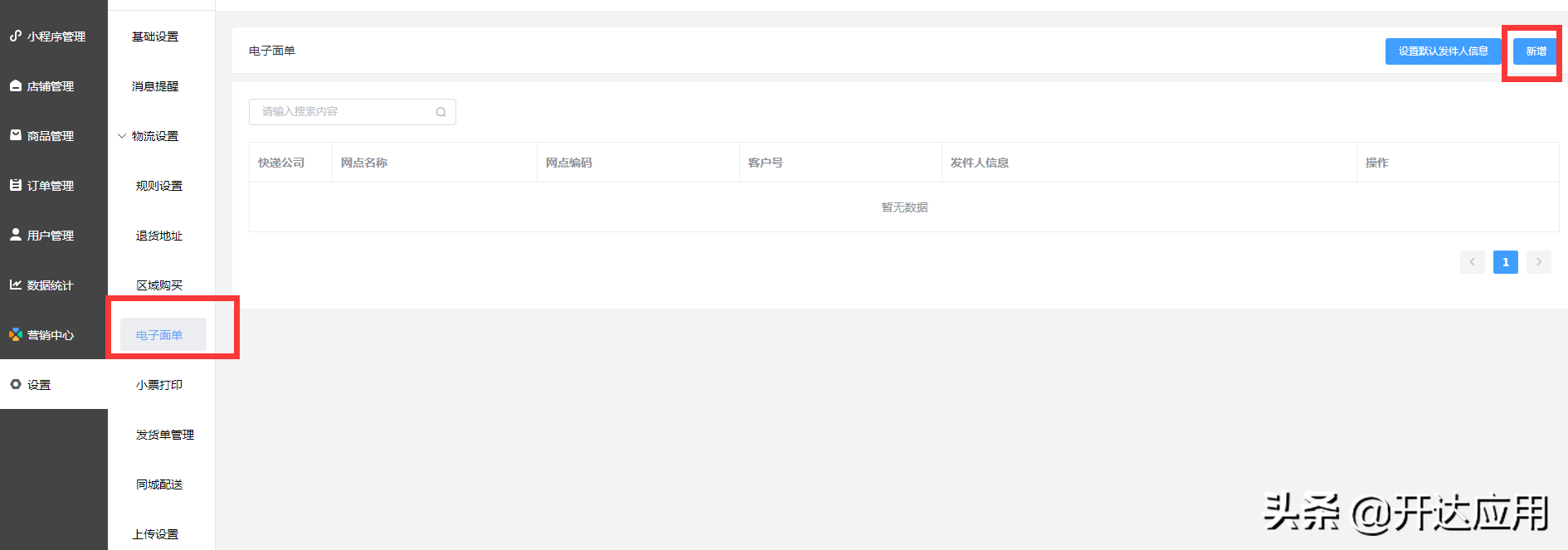 五合一商城小程序如何设置电子面单?如何打印电子面单?开达应用