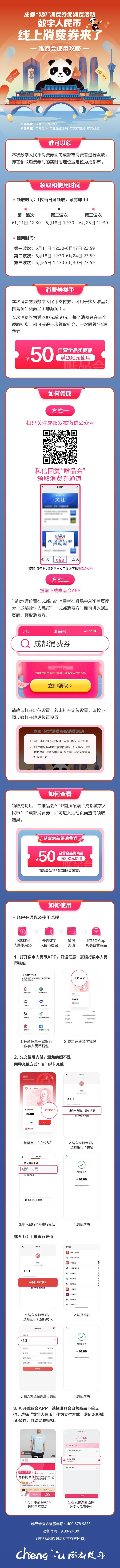 成都数字人民币线上消费券“领取+使用”最全攻略你都get了吗?赶紧调好闹钟,告诉身边亲人好友,准时领券~