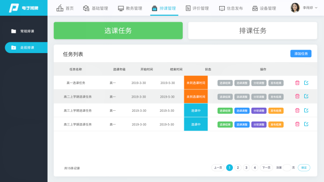 能够支持先排后选和先选后排(基于学生选课结果以及学校的规则进行排课)两种模式,支持混排主题教室排课功能。