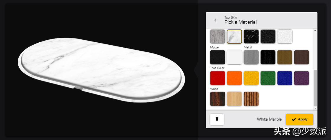 这个界面主要由左侧预览区和右侧的贴纸区组成,在预览区下方我们可以根据实际情况选择设备本身的外观配色,方便查看贴纸贴上后和设备本身的搭配效果,右侧的贴纸区则视设备的具体情况提供不同区域的贴纸选项,可选的贴纸从材质到配色上应有尽有,我们可以针对不同区域(比如 Pixel 3 XL 采用材料拼贴设计的后背)选择不同的贴纸进行搭配,搭配效果可在右侧预览区即时呈现。