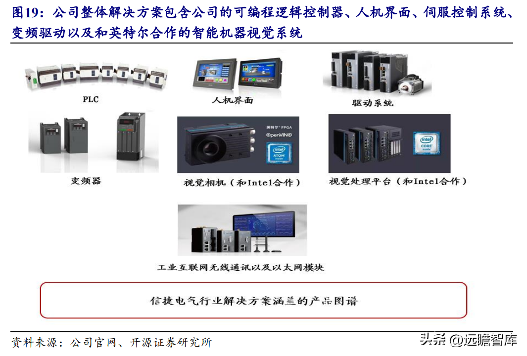 信捷电气的整体解决方案包含公司的可编程逻辑控制器、人机界面、伺服控制系统、变频驱动以及和英特尔合作的智能机器视觉系统。