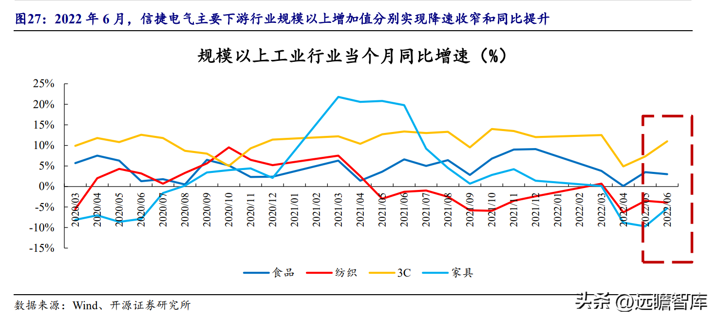 选取信捷电气产品主要应用下游的规模以上工业增加值月度同比增速数据,我们观察到2020年6月,各行业或出现降速收窄,或出现同比增长,预计三、四季度自动化产品市场需求将有一定程度的恢复。
