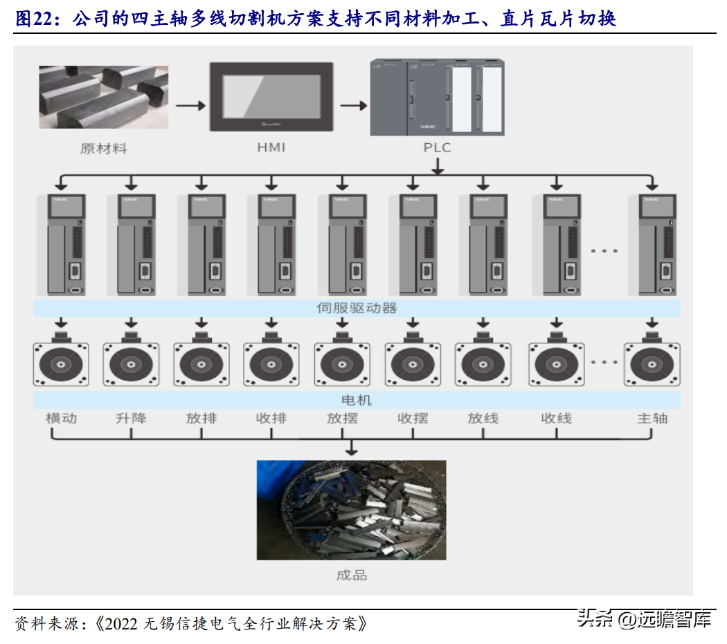 如在光伏领域,公司针对用于切片加工的多线切割机,推出了四主轴多线切割机解决方案以提高切割精度,同时保证主轴间转矩稳定、线上张力稳定。