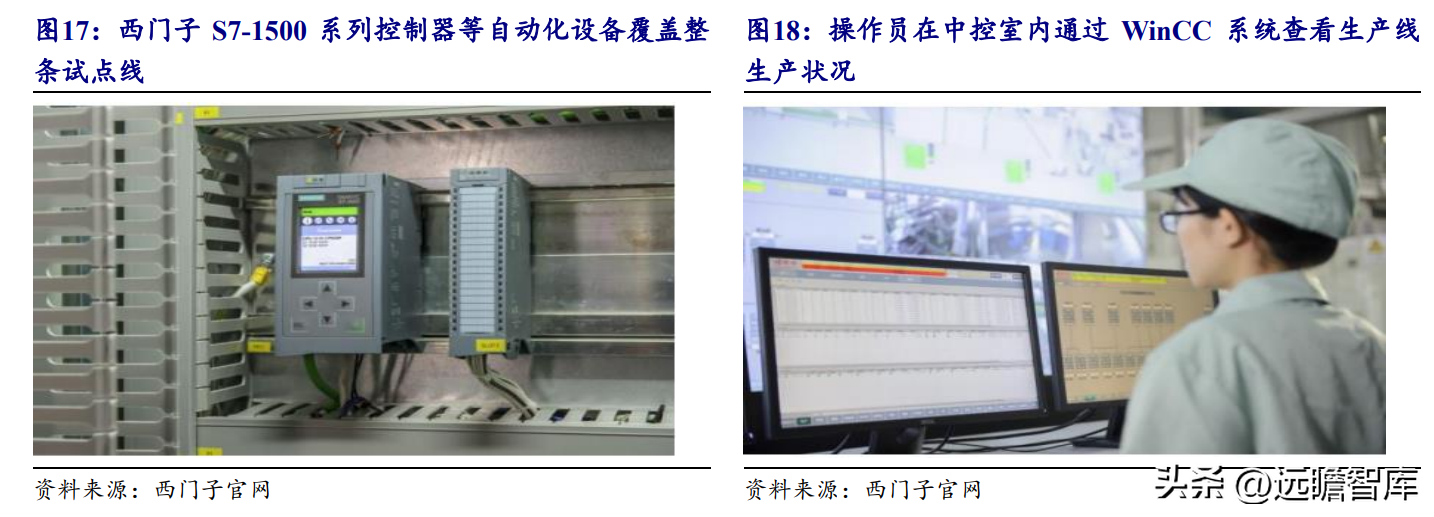 在进一步实现数字化和智能化升级改造的过程中,西门子为娃哈哈提供了包括S7-1500系列PLC、工业服务器和人机界面(HMI)等在内的自动化设备、全集成自动化平台(TIAPortal)、WinCC系统、能源管理系统和Profinet工业网络等在内的完整解决方案。在底层,西门子的PLC等自动化设备覆盖整条生产线。