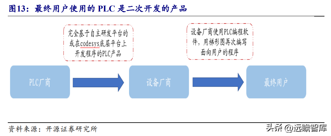 PLC由硬件(芯片、PCB和接线端子等结构件,构成PLC60%-70%的成本)和嵌入式软件构成。嵌入式软件是PLC的核心,包括底层软件和编程环境。具备各类型PLC的底层开发平台铸就了PLC巨头们稳固的护城河。