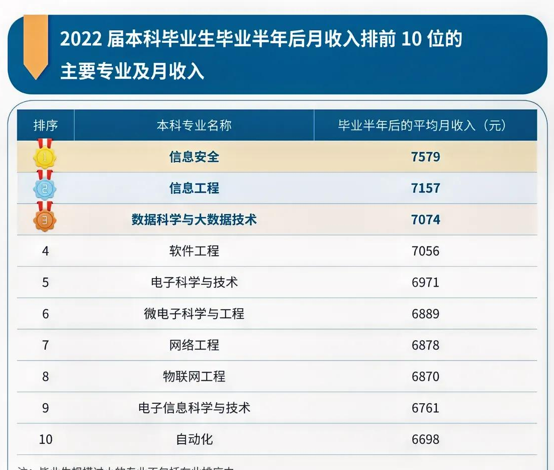 信息安全、信息工程、数据科学与大数据技术、软件工程,这四个专业在月收入高薪排行榜上占据了前四位。
