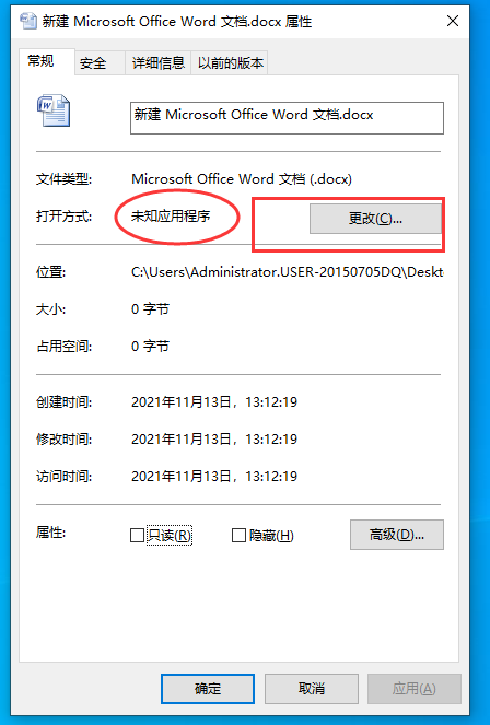 出现如下界面,发现该文件的打开方式为未知应用程序,也就是打开该方的工具没有选择。