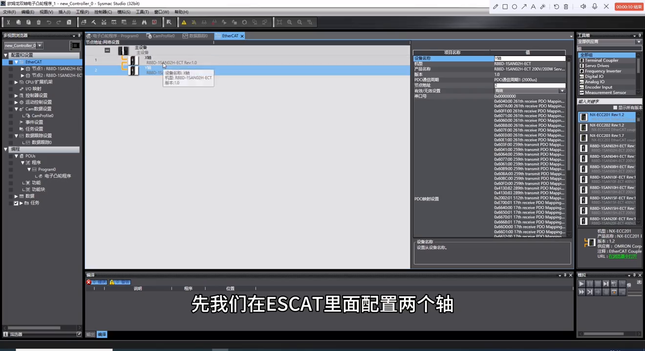 接下来,我将向大家介绍如何编写电子凸轮程序。首先,需要在ESCAT中配置两个轴,分别是主轴x和重轴y。然后,设置一个电子凸轮表。在程序中,首先需要使能x轴和y轴,并初始化原点至0。接下来,设置x轴为主轴,x轴主轴为循环化圆。然后,使用CAM in调用电子凸轮表,设置x轴为主轴,y轴为重轴,并使用0号曲线进行循环运动。当执行动作结束时,只需按下停止按钮并使用MC came out曲线退出。如果需要修改原程序,请在评论区留言,我会私信大家。