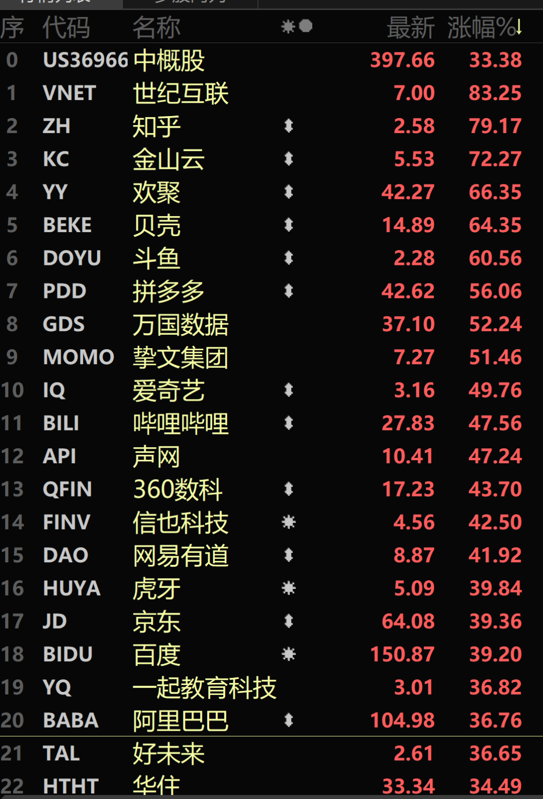 3月16日的恒生科技指数大涨22.2%,大量科技股的涨幅都在30%以上,当晚的中概股指数也大涨超过30%,知乎、金山云、拼多多、贝壳这些知名中概股的涨幅更是高达50%以上。