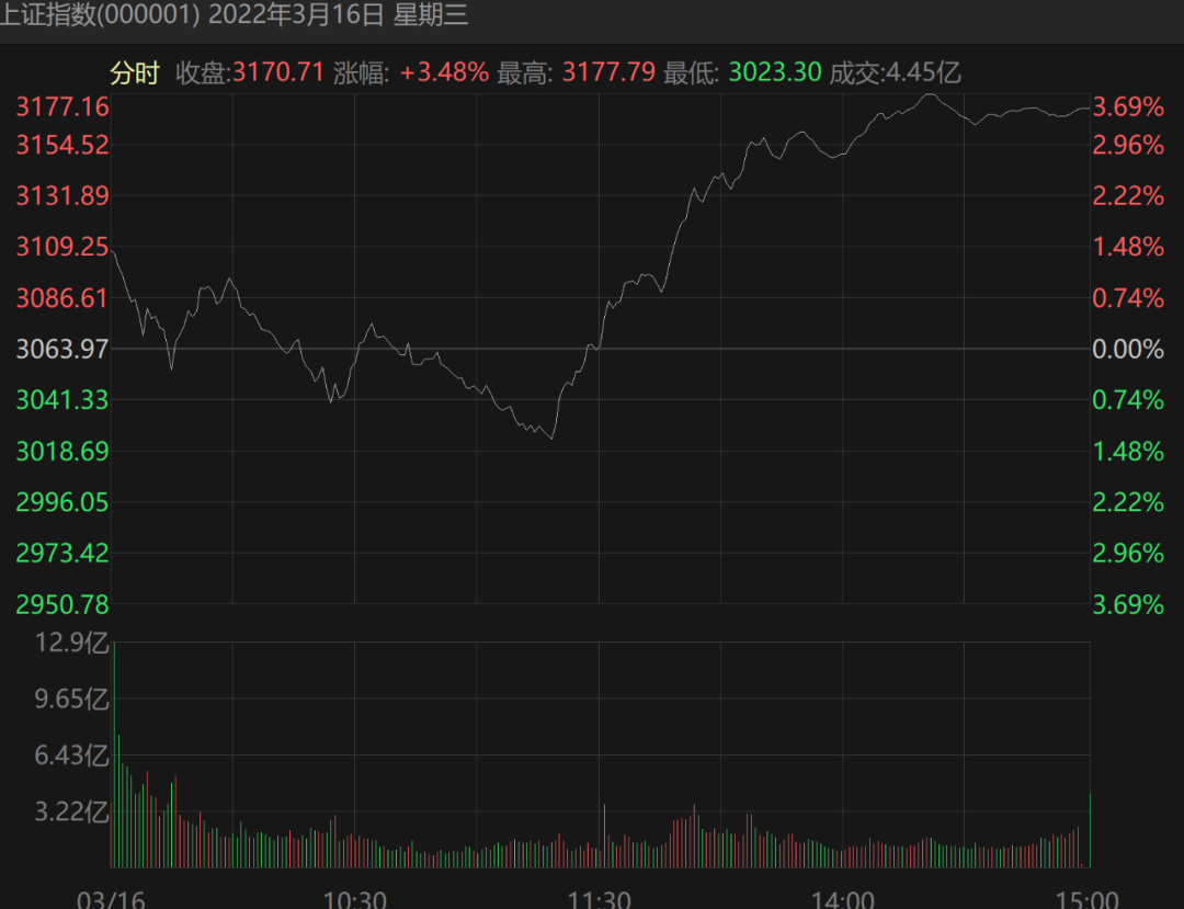 在经历了连续大幅下跌之后,受相关会议的利好刺激,3月16日,眼看就要跌破3000点大关的A股完成绝地反击,在盘中急跌之后出现大幅拉升。
