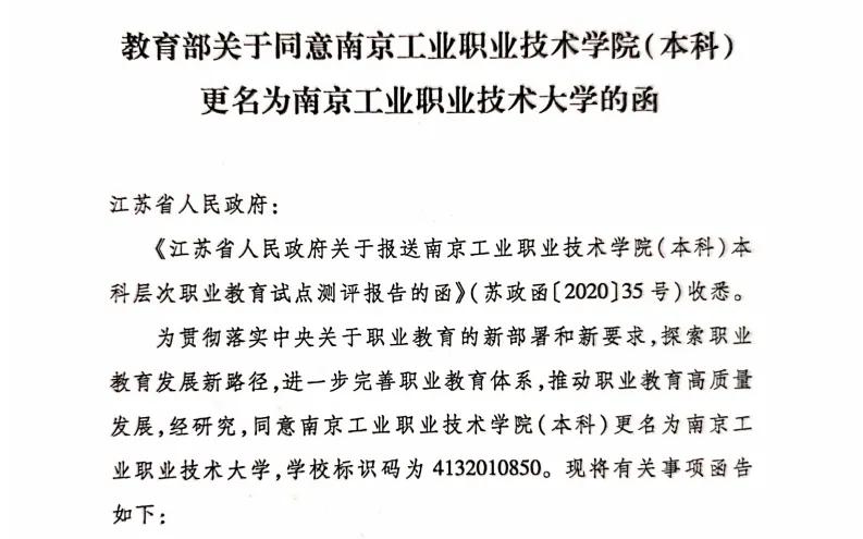 其实,学校想改名的话,并不是一件很容易的事情,需要经过很严格的评估和审核,这些工作在短时间内,是不可能完成的,南京工业职业技术大学之所以能成功改名,也是因为本身的实力也很强,在国内和省内高职类院校排名靠前,因此,江苏考生可以多关注这一所学校。