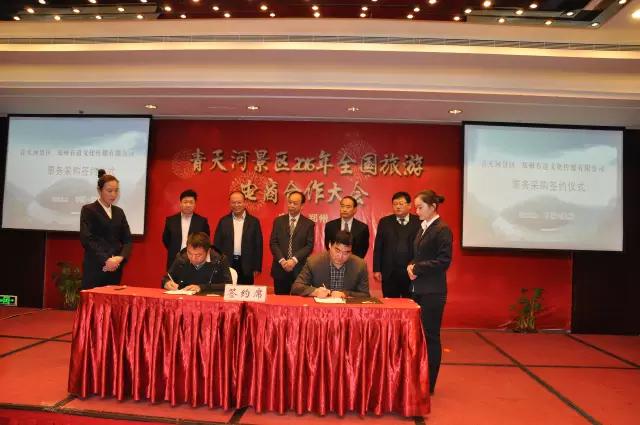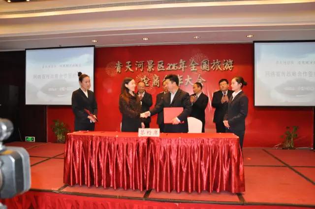 会上,青天河景区总结了过去一年在电子商务方面取得的成绩。展望了2016年景区在智慧景区建设、拥抱“互联网+”、完善景区电子商务体系等方面的前景。此次会议,全国电商共采购青天河景区相关旅游产品门票20余万张,涵盖韩国市场开发、旅游包机、旅游专列、门船票、餐饮、住宿等相关旅游产品。与凤凰网、驴妈妈豫西北分公司、郑州思泽文化传播有限公司、携程旅行网、郑州有道文化传媒有限公司、河南旅游百事通达成战略合作协议。
