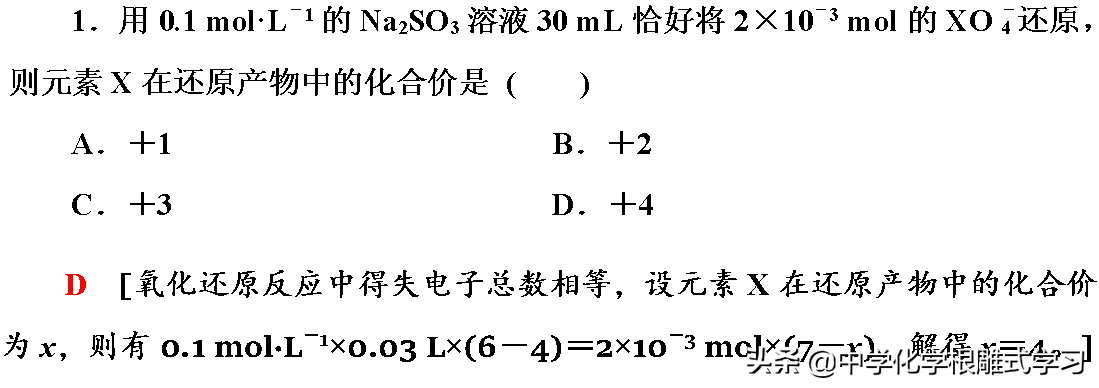n(氧化剂)×变价原子个数×化合价变化值(高价-低价)=n(还原剂)×变价原子个数×化合价变化值(高价-低价)。
