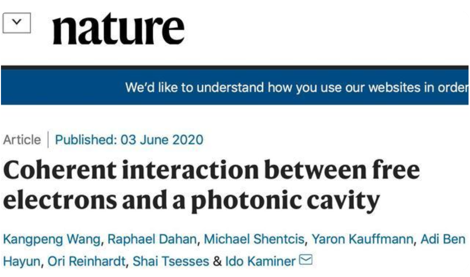 今年 6 月,一篇题为 “Coherent interaction between free electrons and a photonic cavity”《自由电子与光子腔之间的相干相互作用》的论文发表在 Nature 上,该文第一作者王康鹏(Kangpeng Wang)对其团队的最新研究成果作出如上描述。