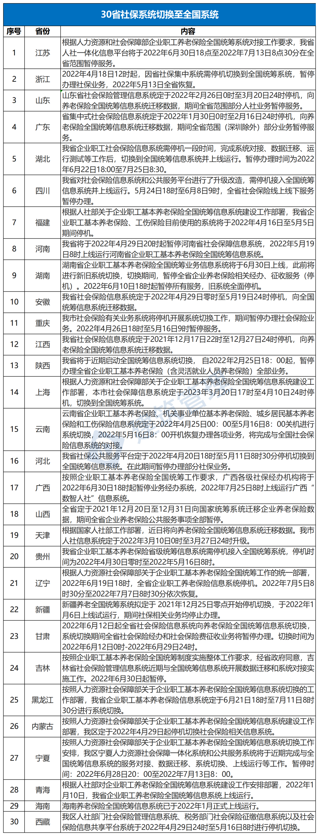 30个省社保系统切换至全国系统!