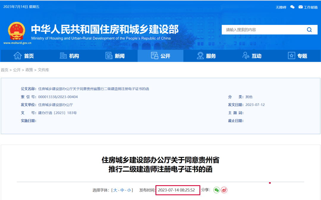 7月14日,住建部发布《关于同意贵州省推行二级建造师注册电子证书的函》,据悉此前已同意辽宁、湖南、天津、甘肃、吉林、青海、广西、福建、重庆、上海、四川、河南、浙江、江西、新疆、江苏、北京、陕西、云南等多地。