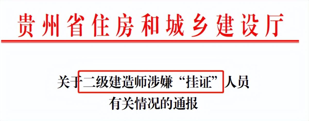 2022年11月22日,贵州省住建厅发布《关于涉嫌“挂证”注册人员名单的通报》。共有19365名 二级建造师涉嫌“挂证”。