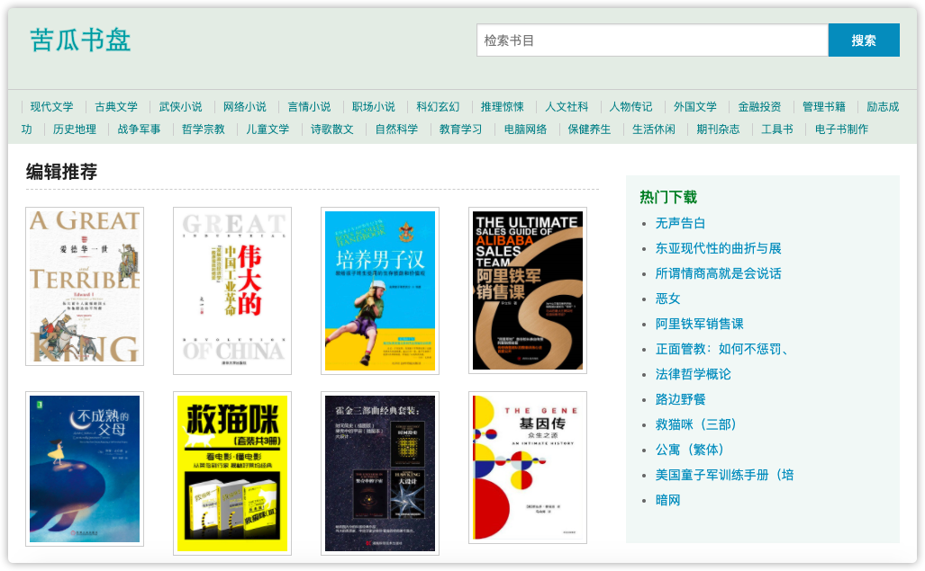 苦瓜书盘是小佳从大学时代就接触的一个搜书平台,平台拥有的书籍比较全面,分类也比较清爽,包括文学书籍,网络小说,人物传记等类型的书籍。