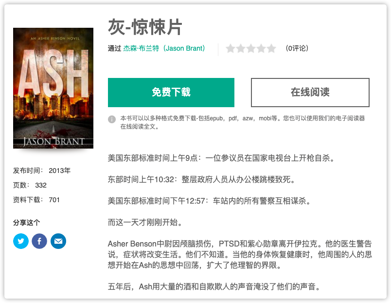打开任意一部书籍,你可以选择免费下载也可以选择在线阅读,书籍的发布时间和页数以及简介都一目了然,如果想要下载就需要注册。