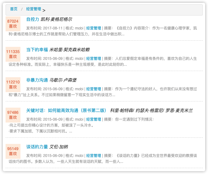 点击任何一个分类即可找到分类下的所有书籍,这个功能是真的好用,如果你想要看经营管理的书籍,点击后就可以下载所有经营管理的书籍。