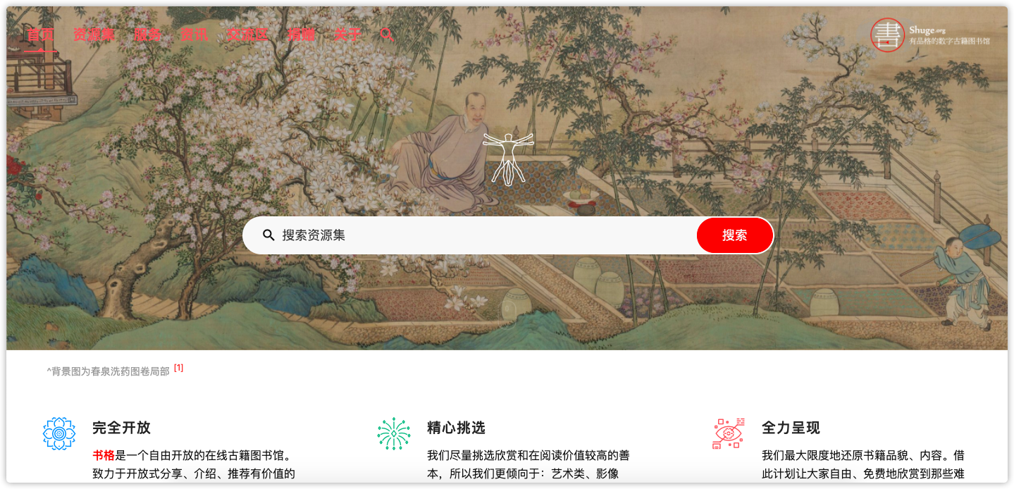 网站排版精美,收藏的古书籍多不胜数,绝对是国学文史的最佳阅读胜地,除了很多古书籍外,还有一些学术资讯以文化图片可以浏览下载。