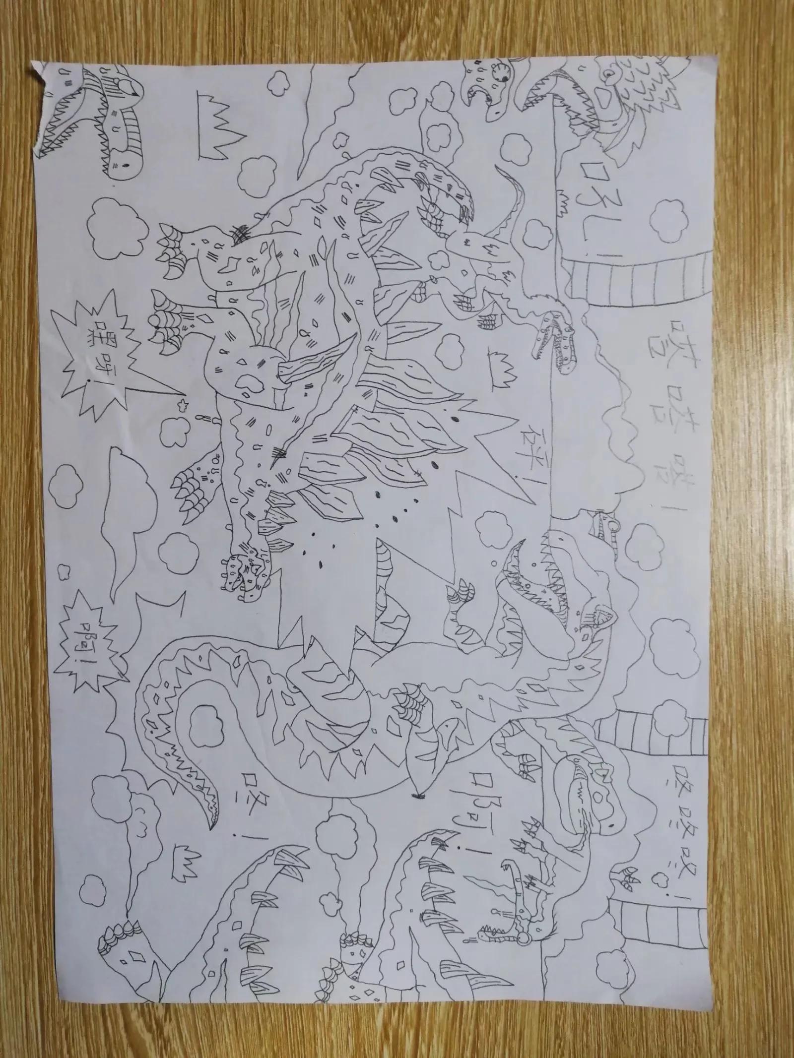 儿子每天就在扮恐龙、看恐龙、画恐龙、说恐龙之中度过。这样的情况持续到四年级才慢慢消退,整整五年。