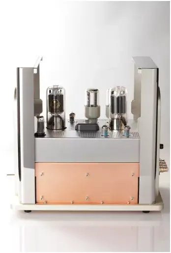 9600mk2后级放大器每声道在纯A类输出时具备60W功率,而在AB类输出时则为100W,输入接口为平衡XLR,输出阻抗可选2Ω/4Ω/8,电子管使用2支KR845、3支5678WB×3、1支5AR4和2支5R4WGB。