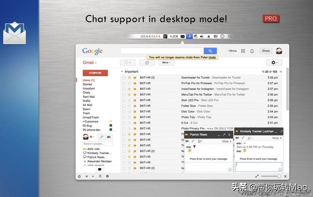 MailPopup Pro for Gmail是访问Gmail的新方式。MailPopup Pro具有以下迷人功能:通过菜单栏中的“1次点击”,菜单栏中的红色邮件图标,带附件的桌面模式,Google聊天,弹出式通知,隐藏模式,全屏支持等访问您的电子邮件!