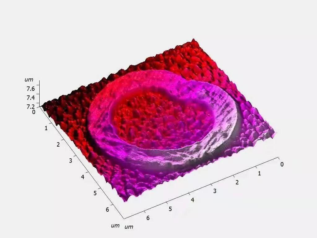 若曝光剂量增大到一定程度,被曝光区域的 PMMA 光刻胶将呈现出负胶性质,显影后无法被去除。下图是笔者在实验室利用电子束直写技术光刻的笛卡尔心脏线,输入心脏线参数方程,并设置较大的曝光剂量,使得PMMA显示出负胶性质,显影后得到心脏线图形。