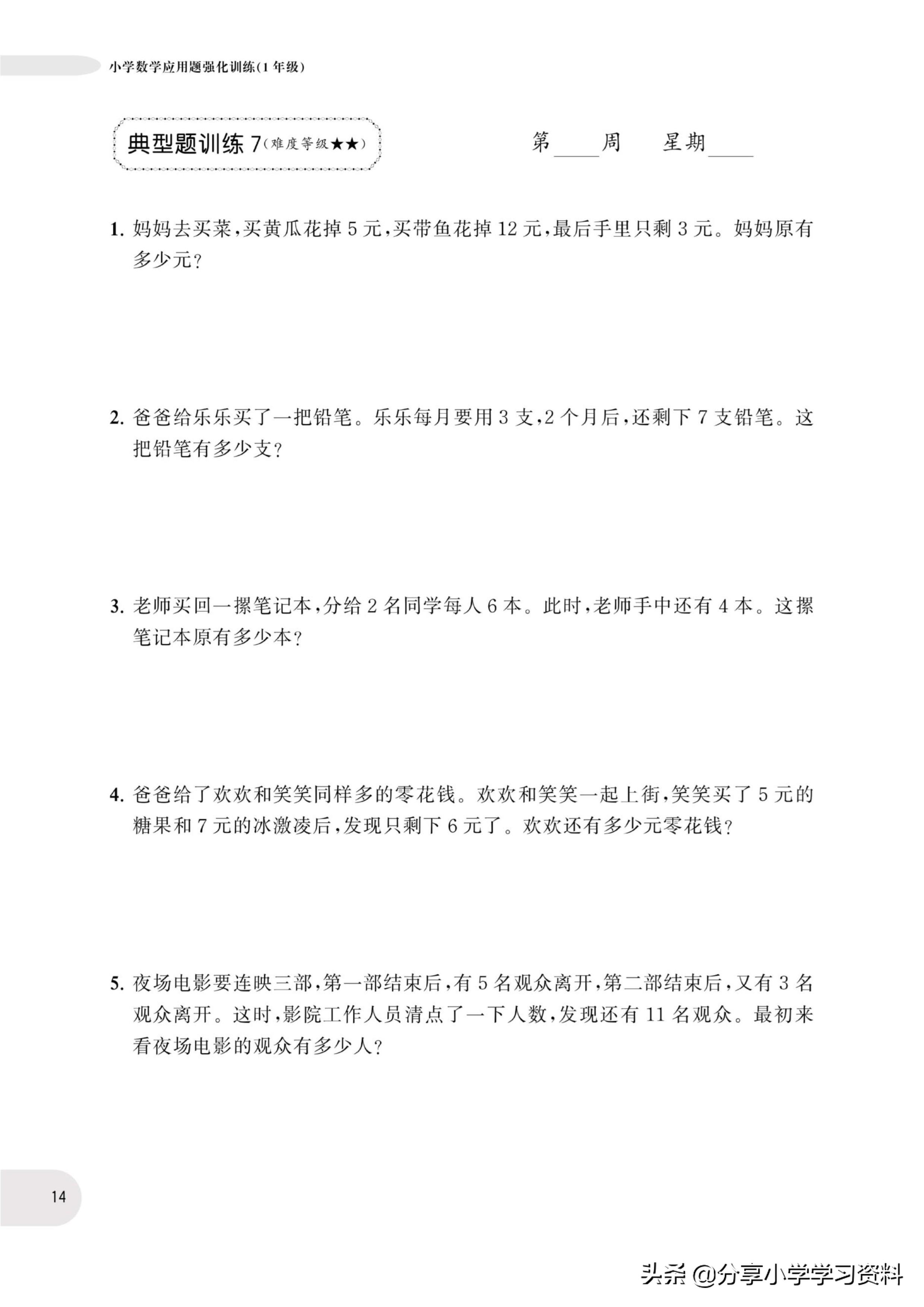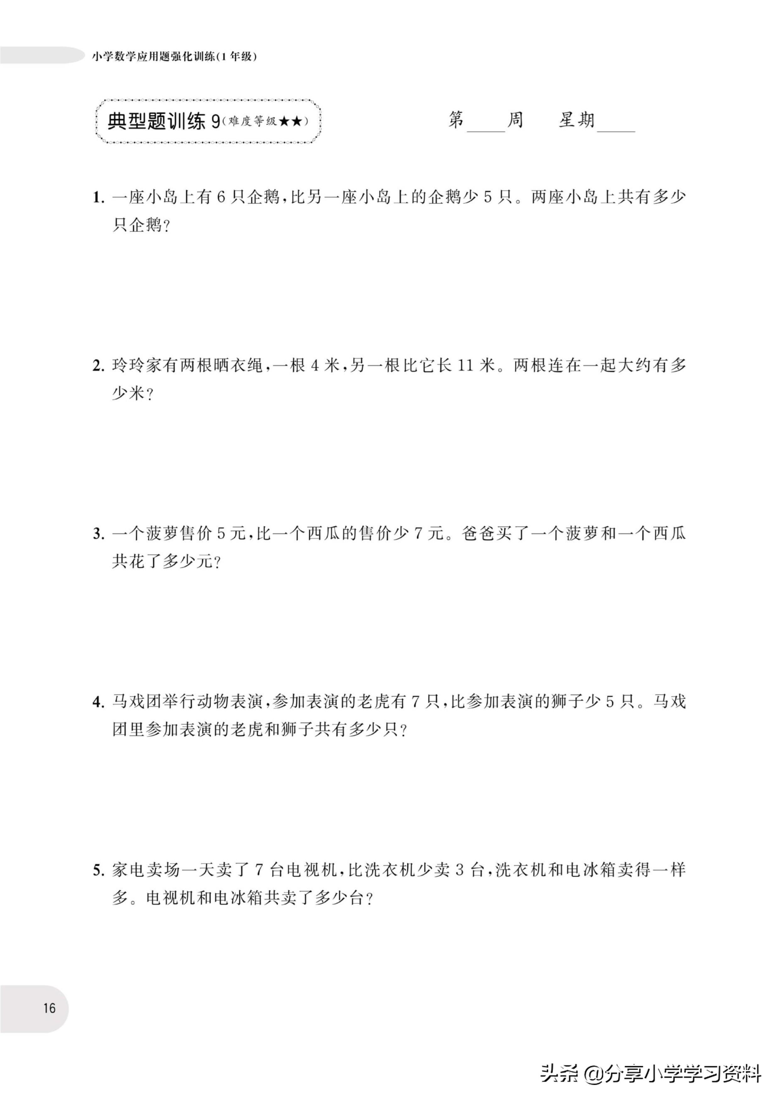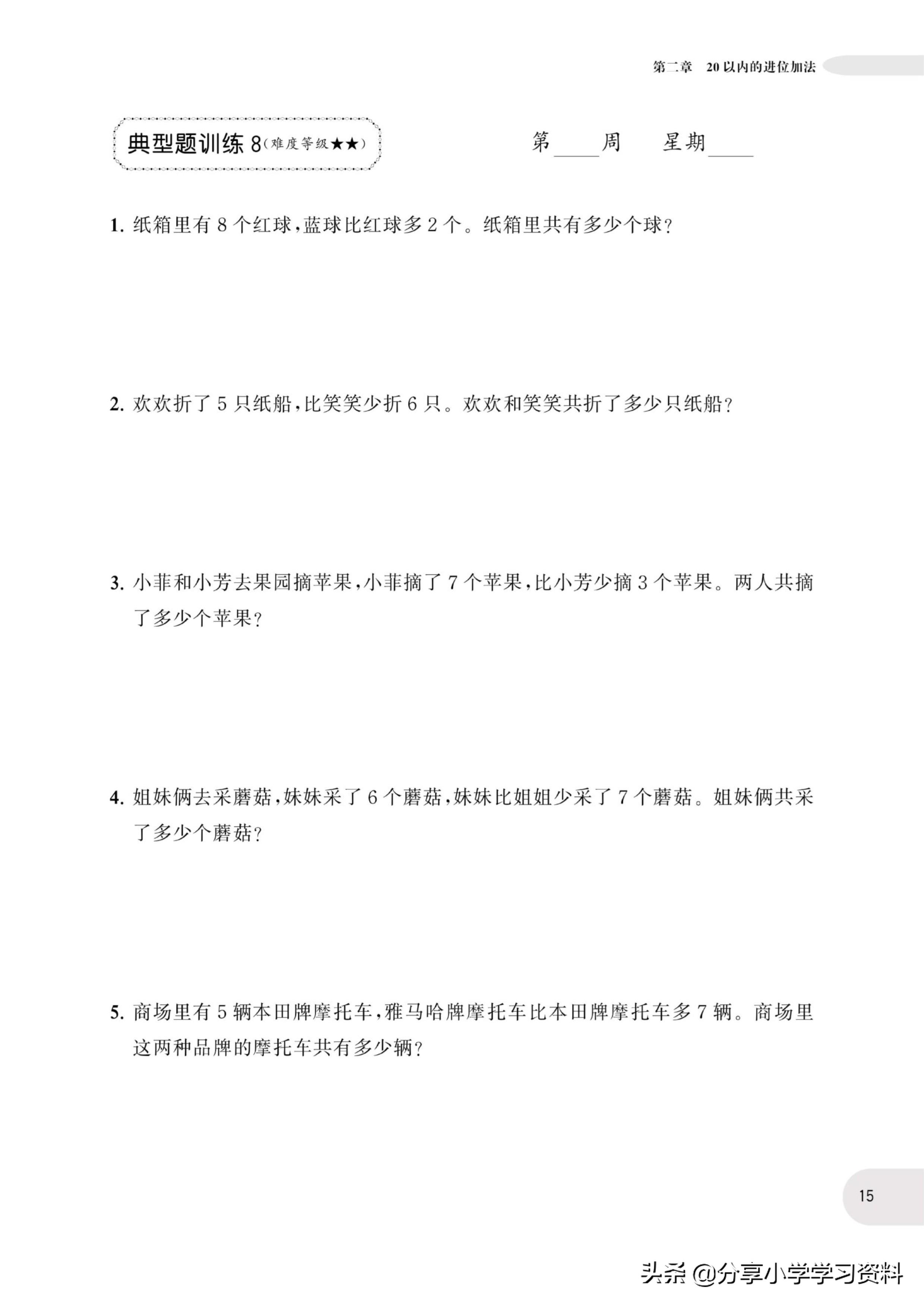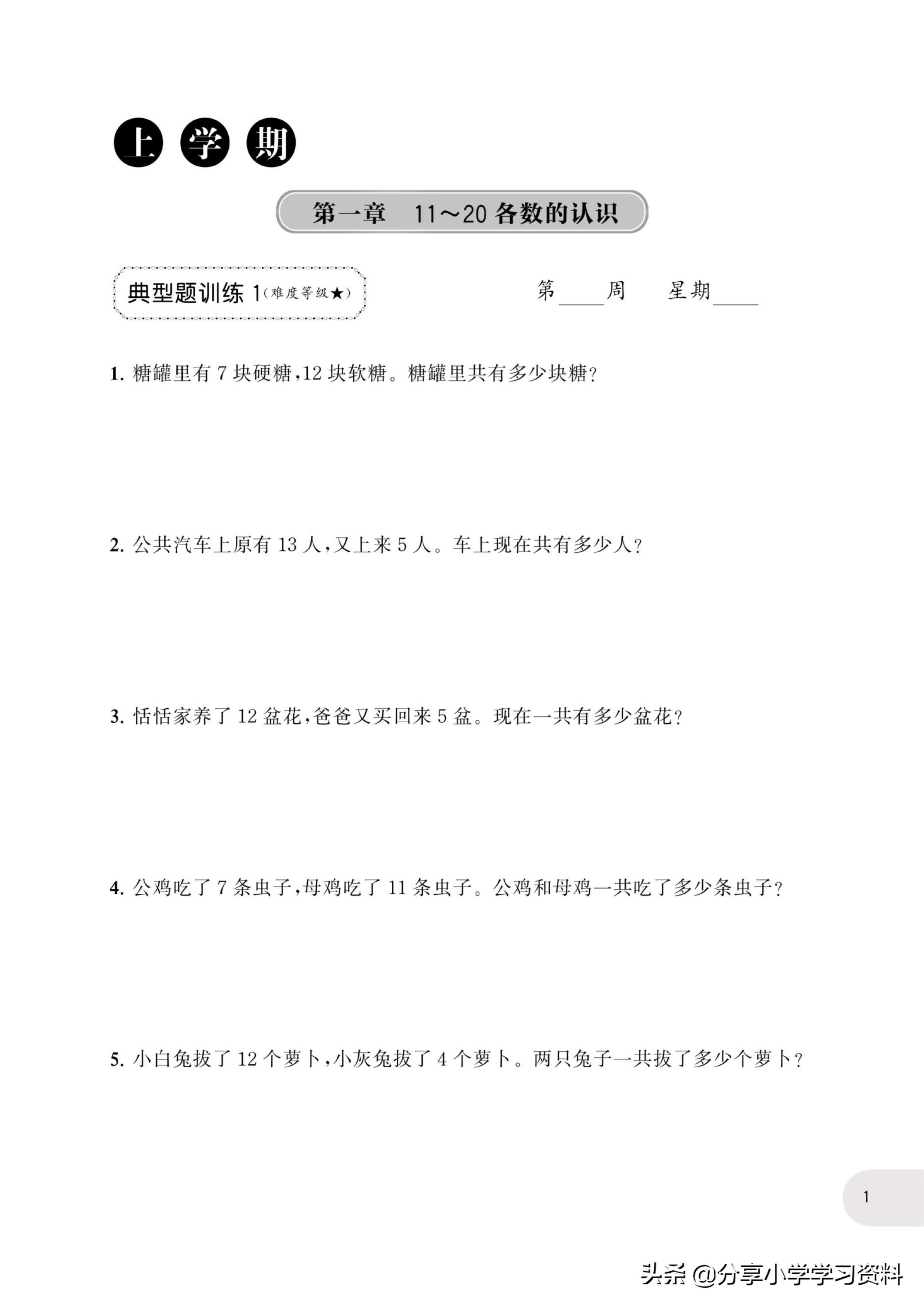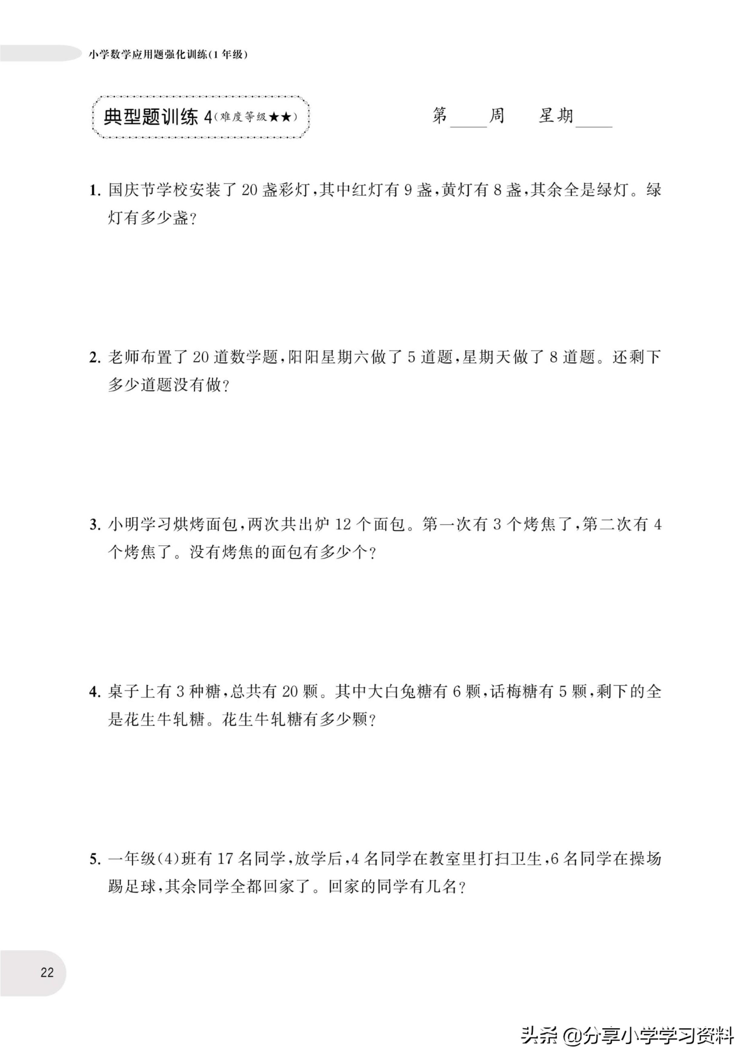 小学数学1年级上册应用题强化训练(有电子档)附答案