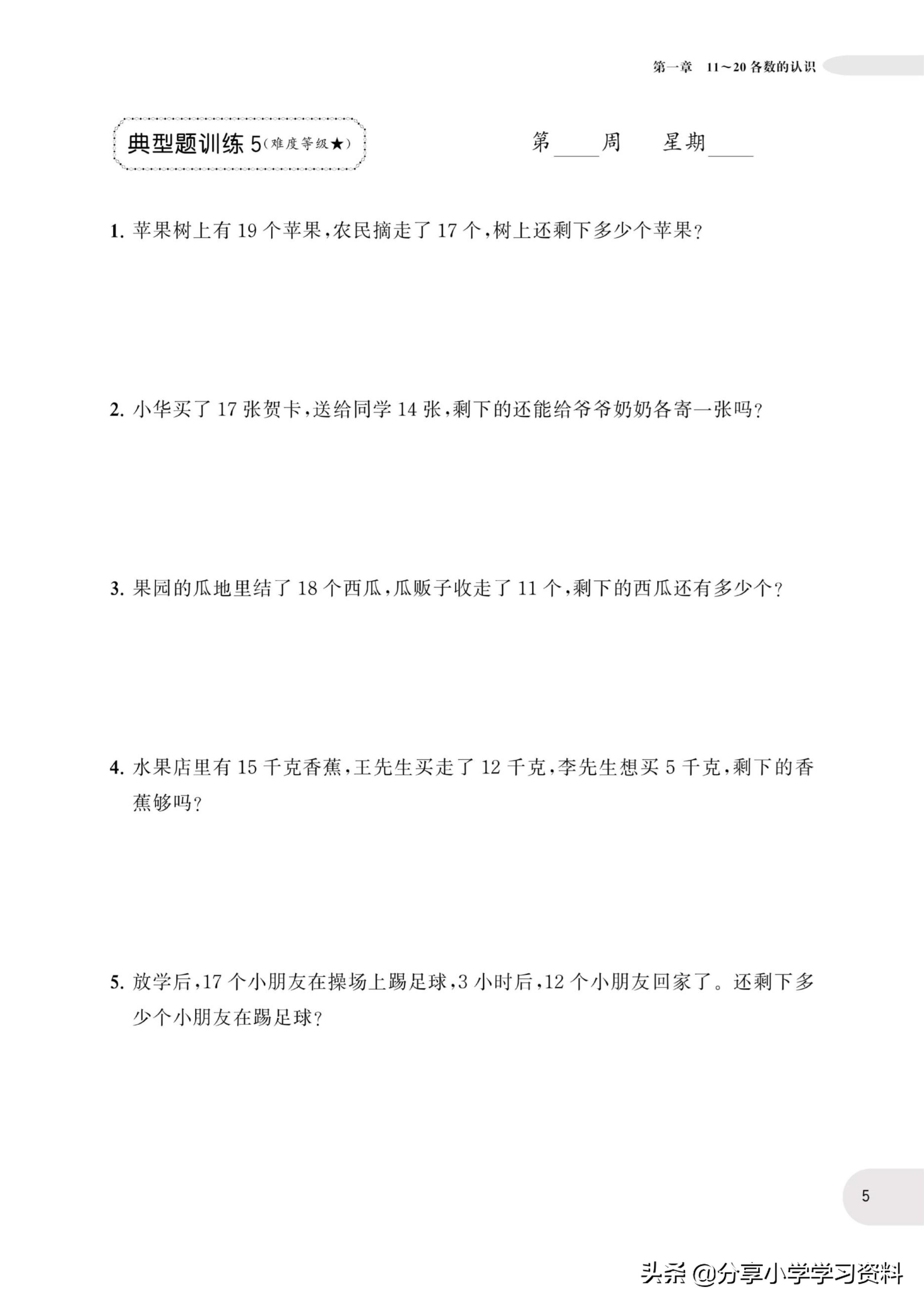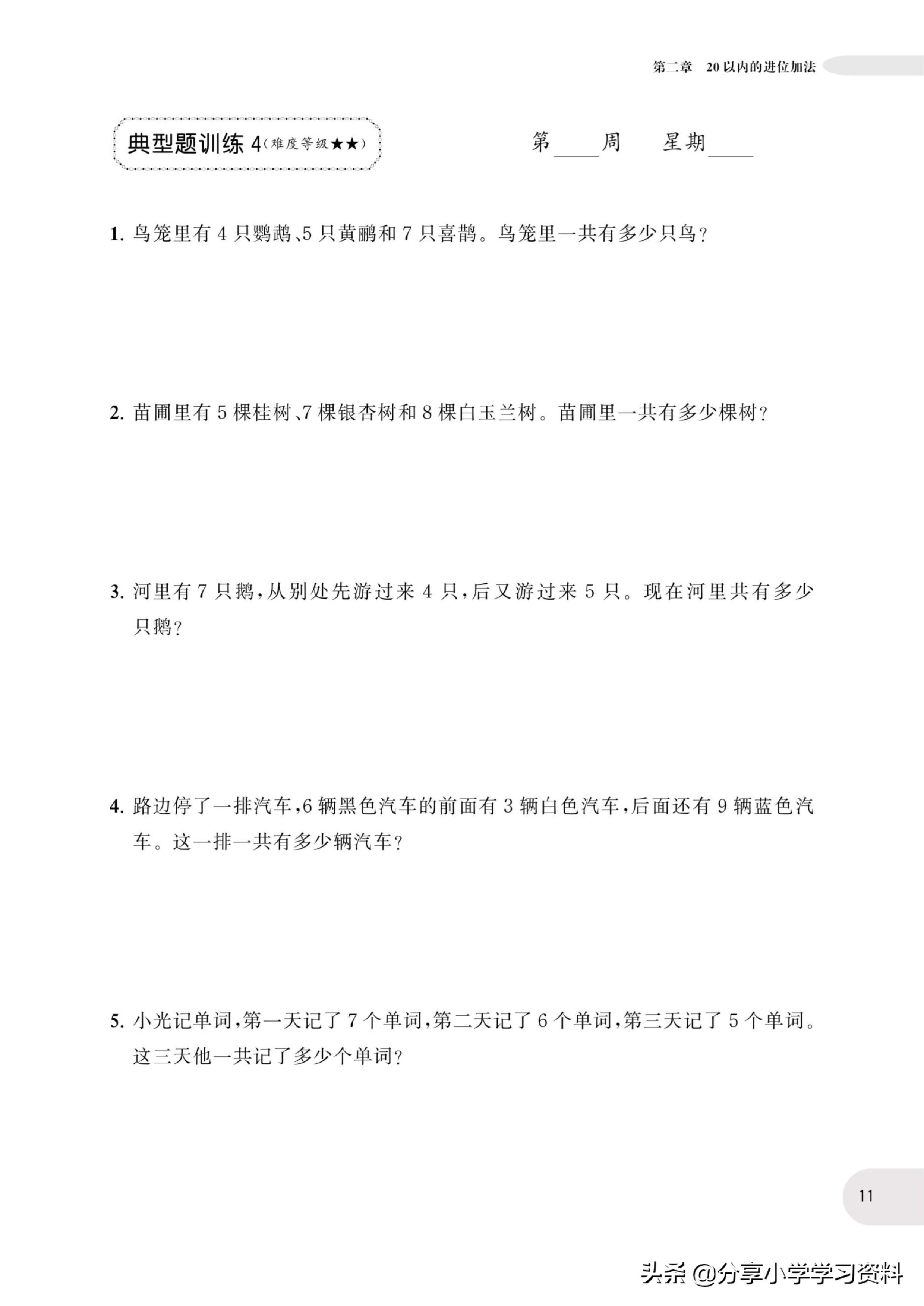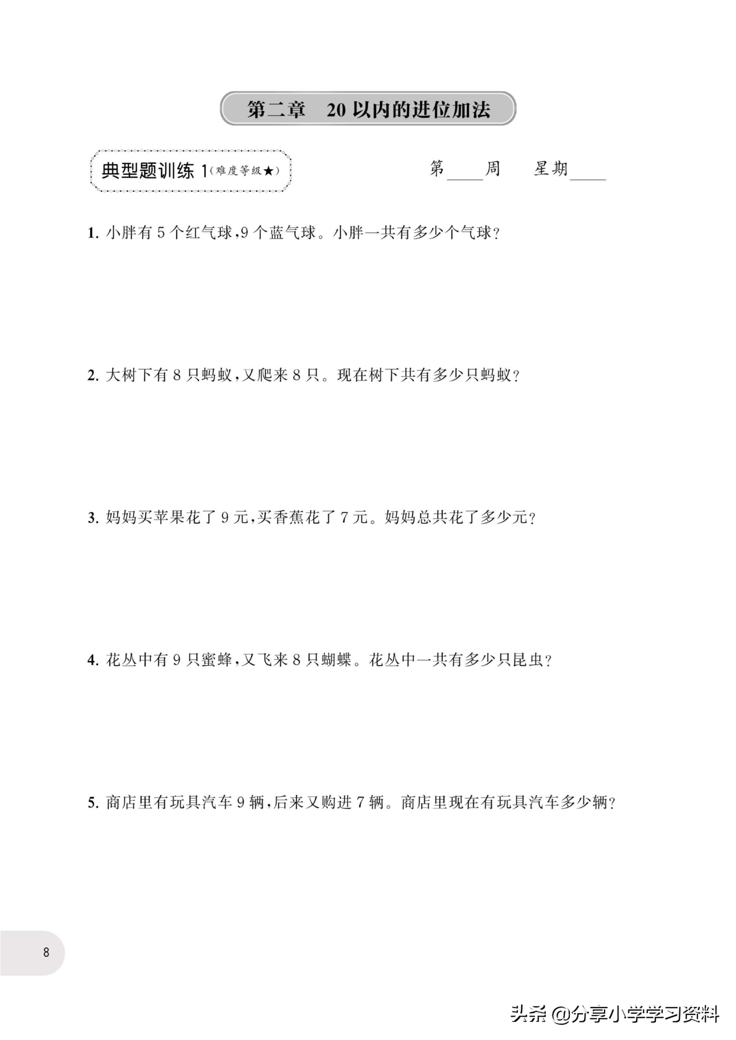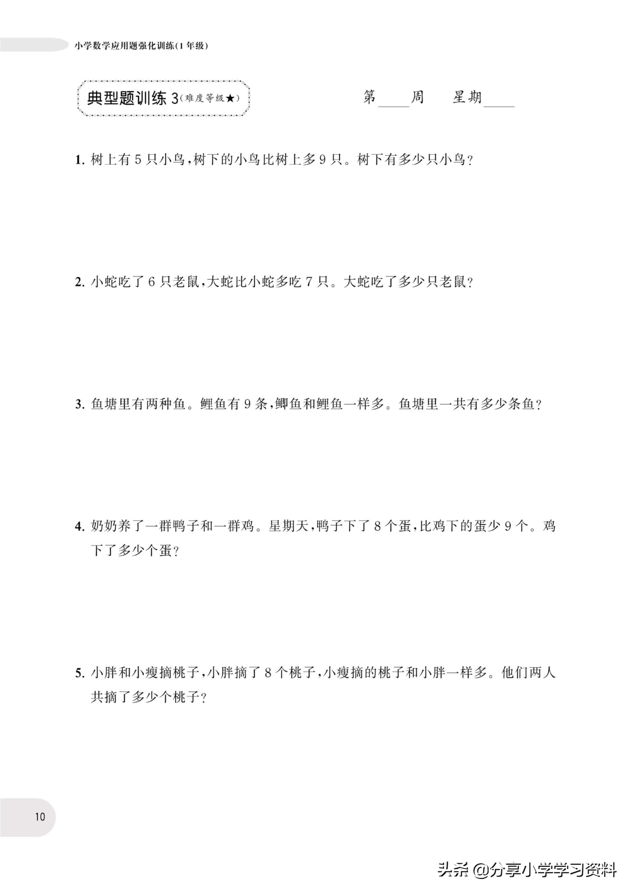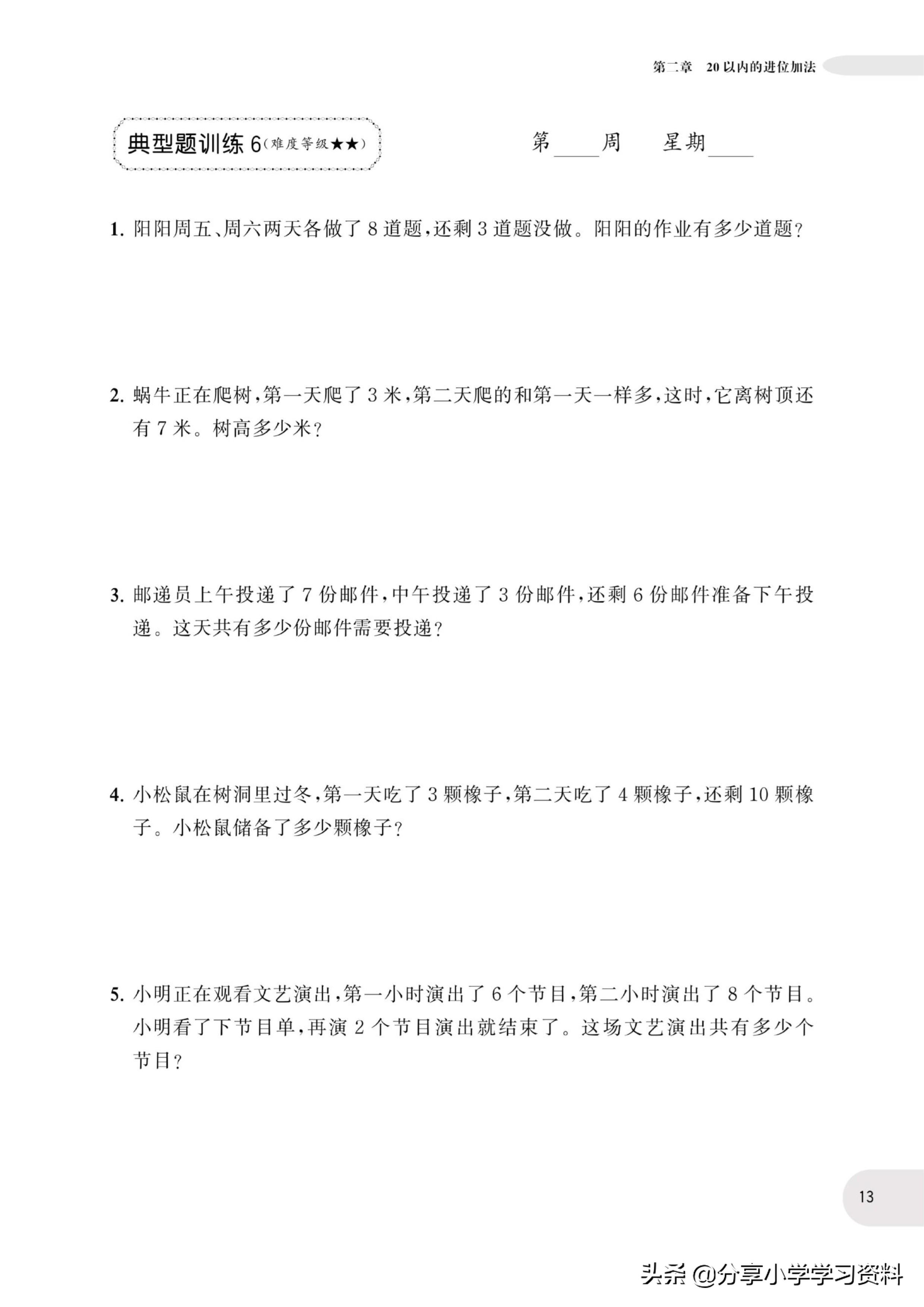 小学数学1年级上册应用题强化训练(有电子档)附答案
